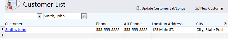 We then can click customer info and then customer list in The Service Program and make sure the new customer was added correctly.