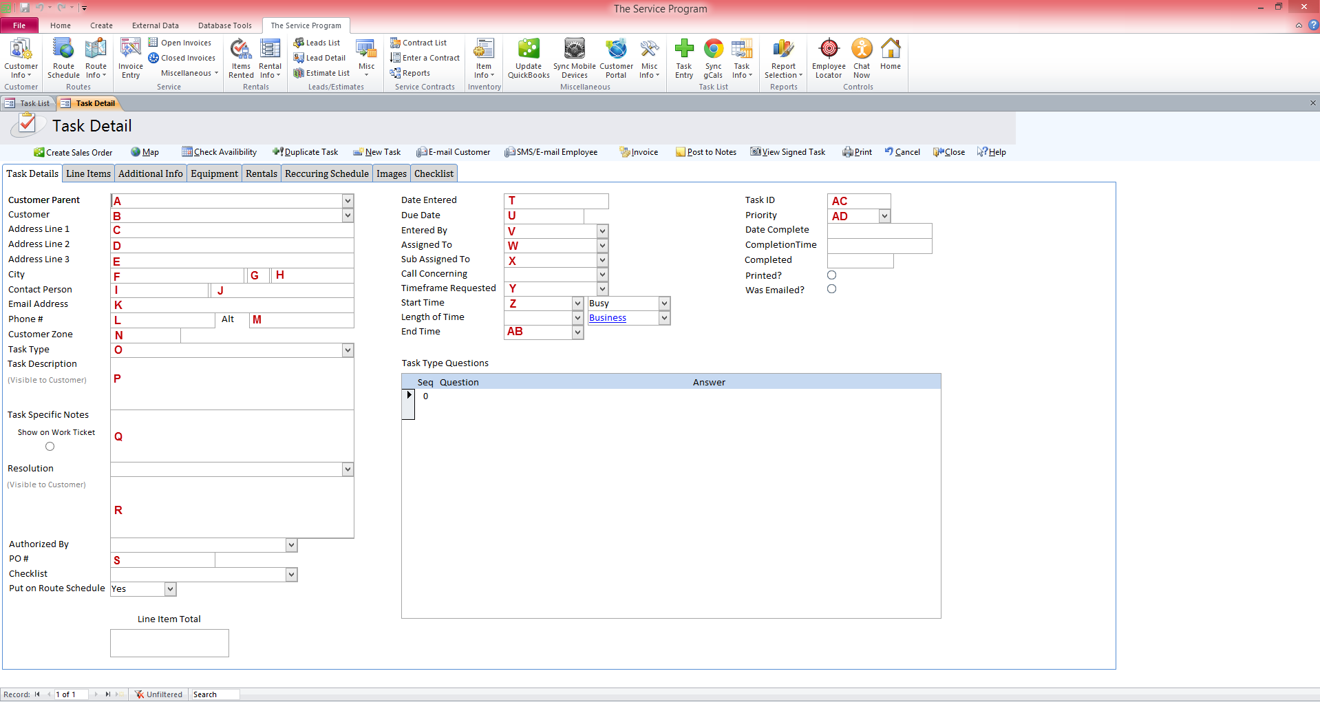 A: ParentRefFullName_1_1 O: Type_1_1 B: FullName_1_1 P: TaskDescription_1_1 C: ShipAddressAddr1_1_1 Q: TaskSpecificNotes_1_1 D: ShipAddressAddr2_1_1 R: Resolution_1_1 E: ShipAddressAddr3_1_1 S: PONumber1_1_1 F: ShipAddressCity_1_1 T: TxnDate1_1_1 G: ShipAddressState_1_1 U: DueDate1_1_1 H: ShipAddressPostalCode_1_1 V: EnteredBy_1_1 I: ContactPerson_1_1 W: AssignedTo_1_1 J: AltContact_1_1 X: SubAssigned_1_1 K: EmailAddress_1_1 Y: TimeFrameRequested_1_1 L: ContactPhoneNumber_1_1 Z: StartTime1_1_1 M: AltPhone_1_1 AB: EndTime1_1_1 N: CustomerZone1_1_1 AC: TicklerID_1_1 AD: Priority1_1_1